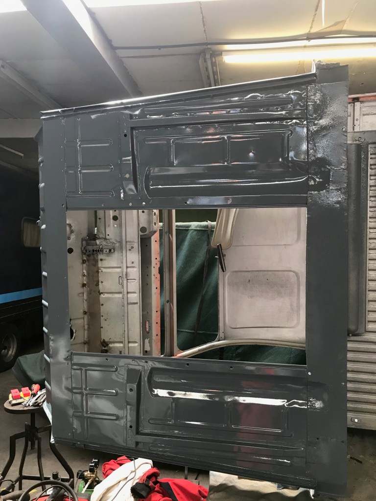Next steps? I need to paint the bonnet (Inside and outside), paint the inside of the rear of the body, sort out the driver and passenger doors and then paint them (which will be a mission), fit the rear doors, paint the chassis, pop the body back on and start re-assembly. Lots more to do. hmm….