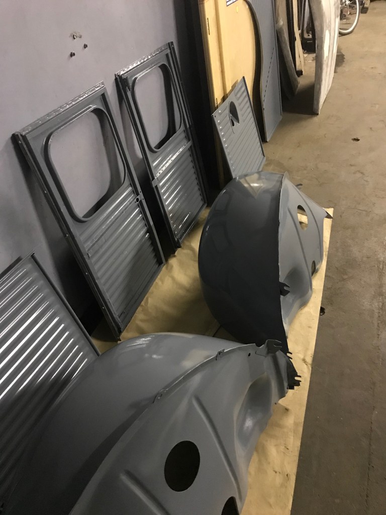 I had a proper rummage about and tidy up before I painted the wheels and the bumper and found the rear door handle – in a bag labelled ‘handle’. Brilliant. Wheels and bumper have been sprayed with a couple of coats of AC140 Gris. I should have got Gris Rose but according to my paint supplier, this grey is the correct colour for 1966. Anyway, I’m sure it will irritate the purists, but in the end they are my wheels and bumper, so grey they are and grey they will stay.