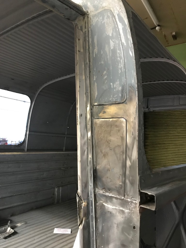 Rear doors – these are in a friable state to say the least. The bottom inch or so has suffered from rust and previous repairs, which although valiant have not stood up well to years of UK weather. I’d like to repair them properly but repair sections are not available and I don’t have the tools to make my own. So, it will be a bit of welding and filler work so that I can put them back on while I look around for some replacements. Rear doors are available for the AK400 (large ripple, square window) and the AK250 (small ripple but oval window) but not the AK350 which has small ripple steel and a square window. If they were available new, they would not be cheap and are as rare as hens teeth second hand. If you are reading this and you have a spare pair of rear doors for an AK350, drop me a line.