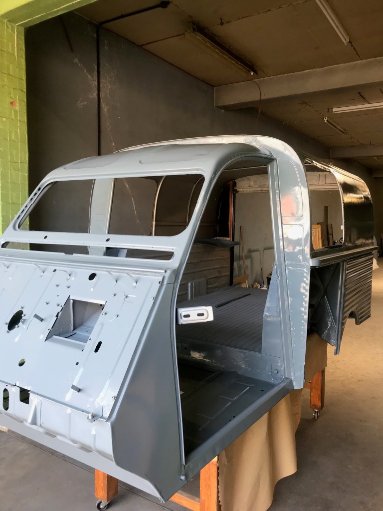 Another weeks worth of hard graft in the workshop, tidying up all the bare metalwork ready for painting. There were so many little bits of the old paint left on the shell, hiding in the dents and rust scabs which took ages to sort out, bits of welding to finish off – things I’d forgotten to do and things I just thought I’d not do on the assumption that nobody would notice or care about – except perhaps me.