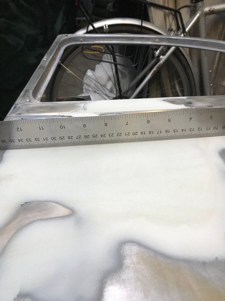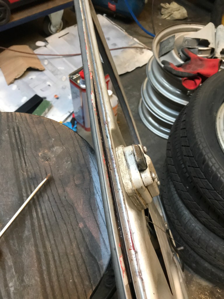 Vent flap – aka ‘the rusty flap’. I don’t have a ‘before’ picture but after stripping off the many layers of household and silver paint, I found some evidence of Bleu Neve, so it could be that this is the original 1966 panel. It’s certainly well made and no-where near as corroded as I though it would be. A dose of phosphoric acid, and a coat of etch primer will see it last a good few more years hopefully. I will have to make a small repair to one end of the strip which holds the captive screws as the one at the end has sheered off but the rest is sound. Oh – I and can confirm that paint stripper can be used to remove paint from the rubber seal as well. Why people don’t use masking tape is beyond me.