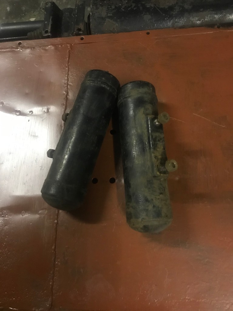 I also removed the 2 rear batteurs – they will be cleaned and re-painted – and I’ll do the same with the two on the front wheels. I think the front wheels need to be removed to get them off, so that will be a job for another day. I have 4 shock absorbers which were retro-fitted to the van a few years ago, so I could leave the batteurs off, but I’ll keep them – they must do something – right?