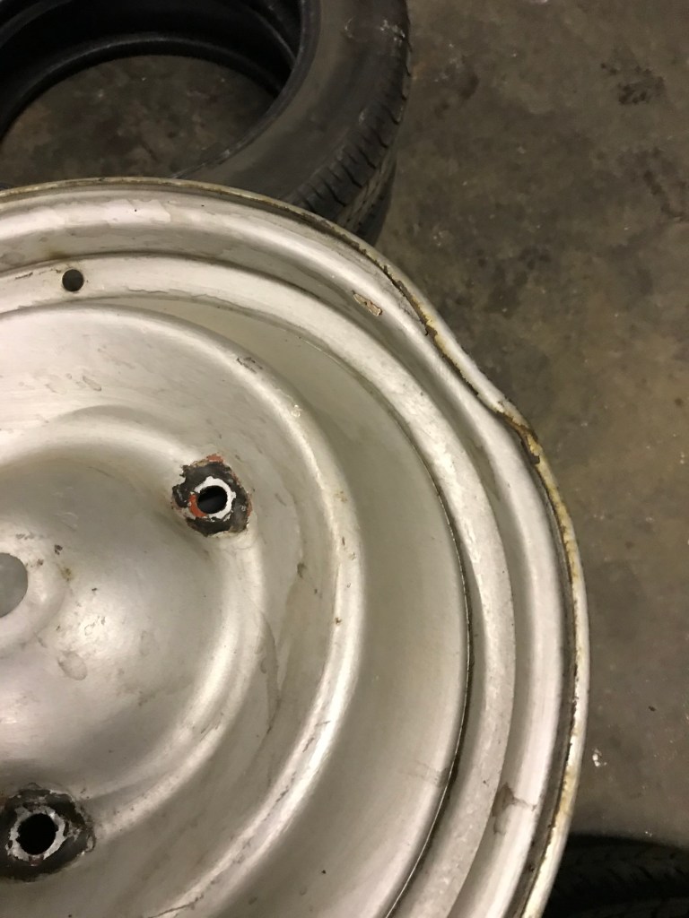 Wheels – luckily for me, the chap in the unit next door to the workshop is a tyre fitter, so I wheeled the wheels round to him and upon offering some pecuniary enticement, he took the tyres off so that I could prep and paint the wheels. However, whilst driving without due care and attention last year, I clouted a traffic island on my way out of a roundabout and dented both offside wheels rather badly.