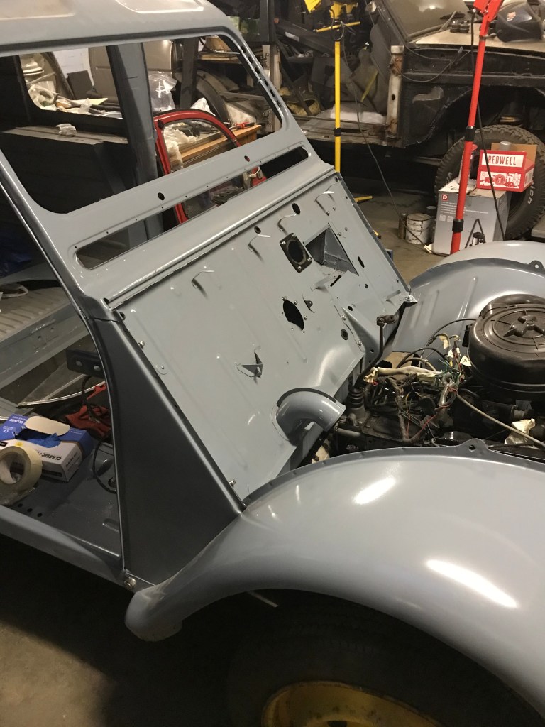 It’s a long old job putting a 2CV back together.. much longer than I originally thought and much, much longer than it took to take is apart. I put some of this down to memory degradation – every time I pick up a bag of bits and pieces to work on, I have to first identify what they are and and they try and recall in what order they were removed. More often than not I have to resort to trial and error. Still – it feels like I’m on the home straight. I’ve no idea how many man hours I’ve spent on this project, all I do know is that I couldn’t possibly do this for a living – I’d never make any money. Also, the inner perfectionist in me has had to be suppressed as I have made compromises – particularly with the paintwork. It’s just not possible to get a perfect paint job on a DIY project.
