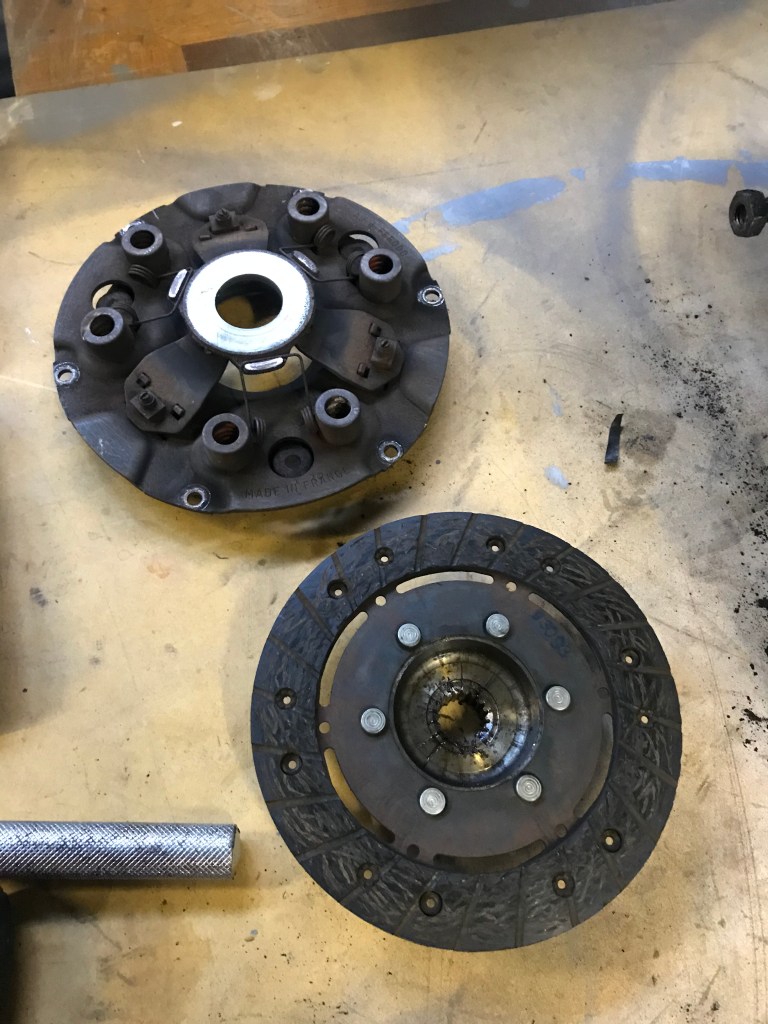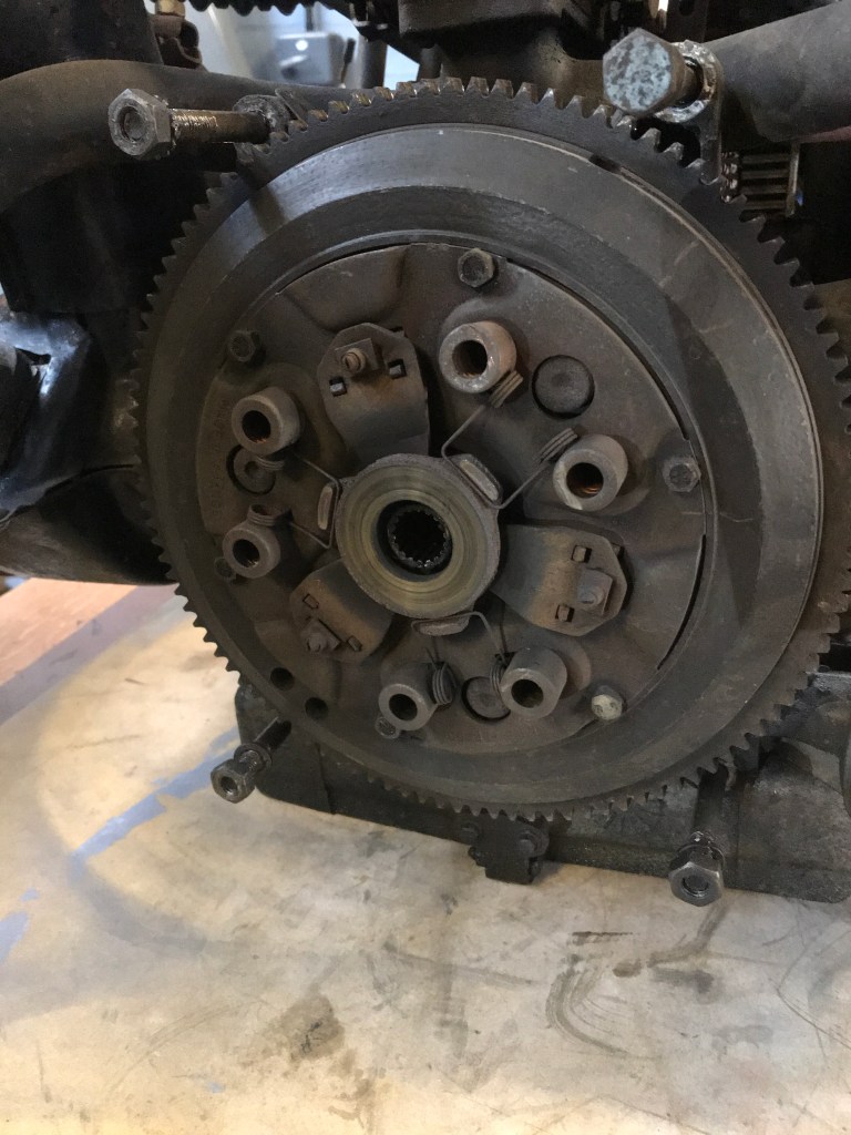 Here’s the friction disc and clutch plate. It doesn’t look it but the disc is very worn – almost down to the rivets, so I’ve caught this just in time
