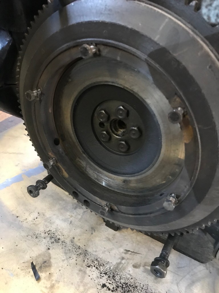Here’s where it gets interesting. This looks to me like a ‘Trafficlutch’ flywheel – with the gubbins removed that make the semi automatic clutch work. A trafficlutch enables the car to be left in gear when the engine is idling – it engages as soon as the revs pick up and is ideal for creeping along in traffic as one doesn’t need to use the clutch pedal. Anyway, the vital parts of this ingenious system are missing (crown and friction wheel etc.). I do have some parts I could use to fit the trafficlutch but I’m not going to bother with it this time. I really need to get the van on the road and retro fitting the trafficlutch parts isn’t going to be straightforward.