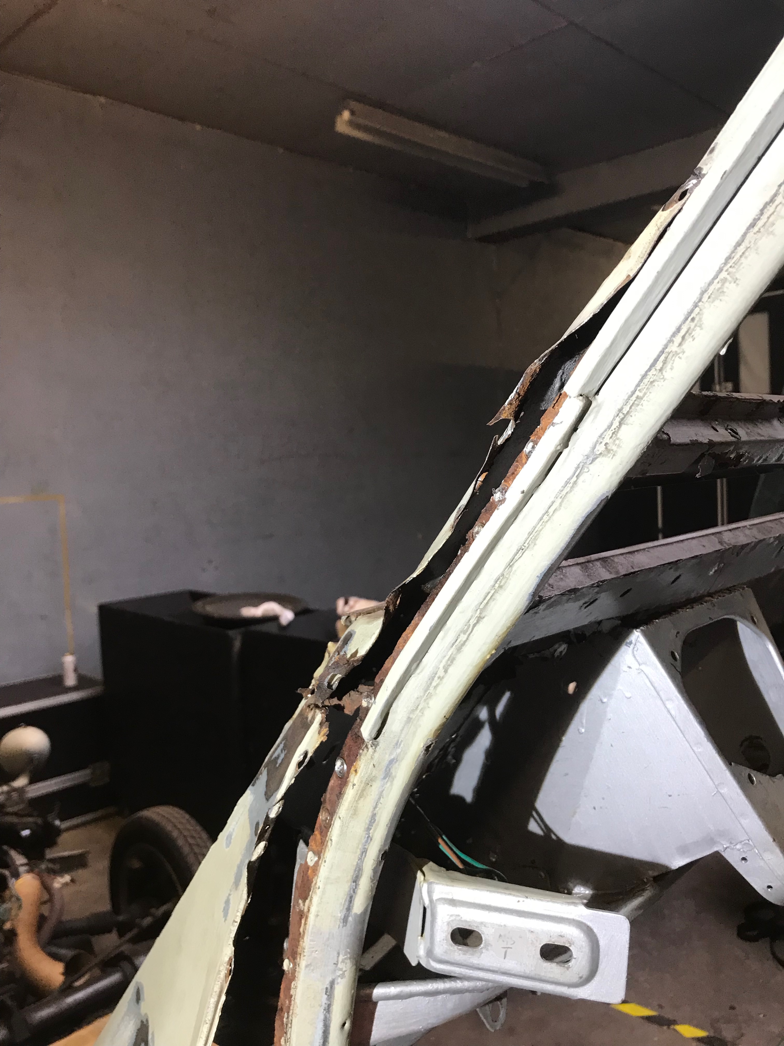 This inner crossmember needs to be cut through – the one below is not attached to the a posts