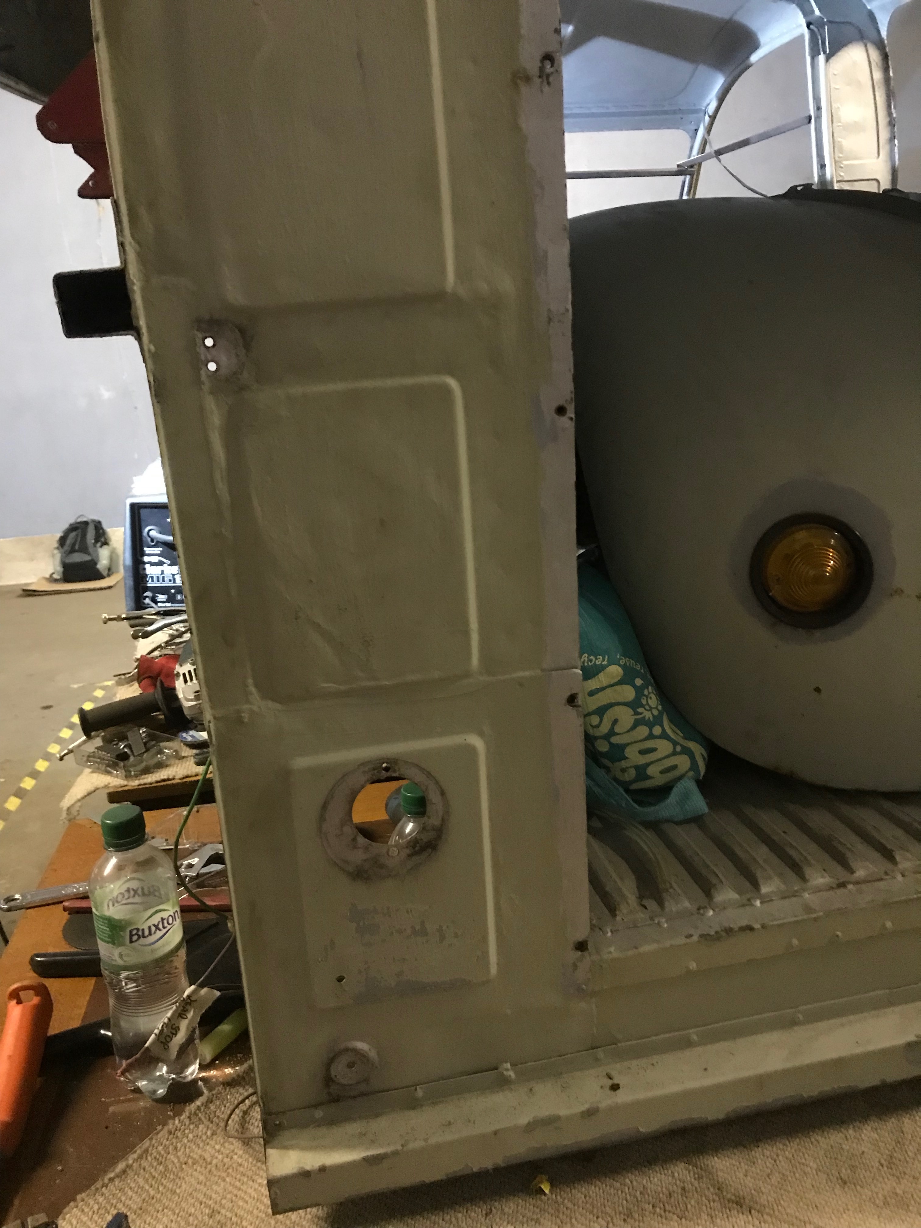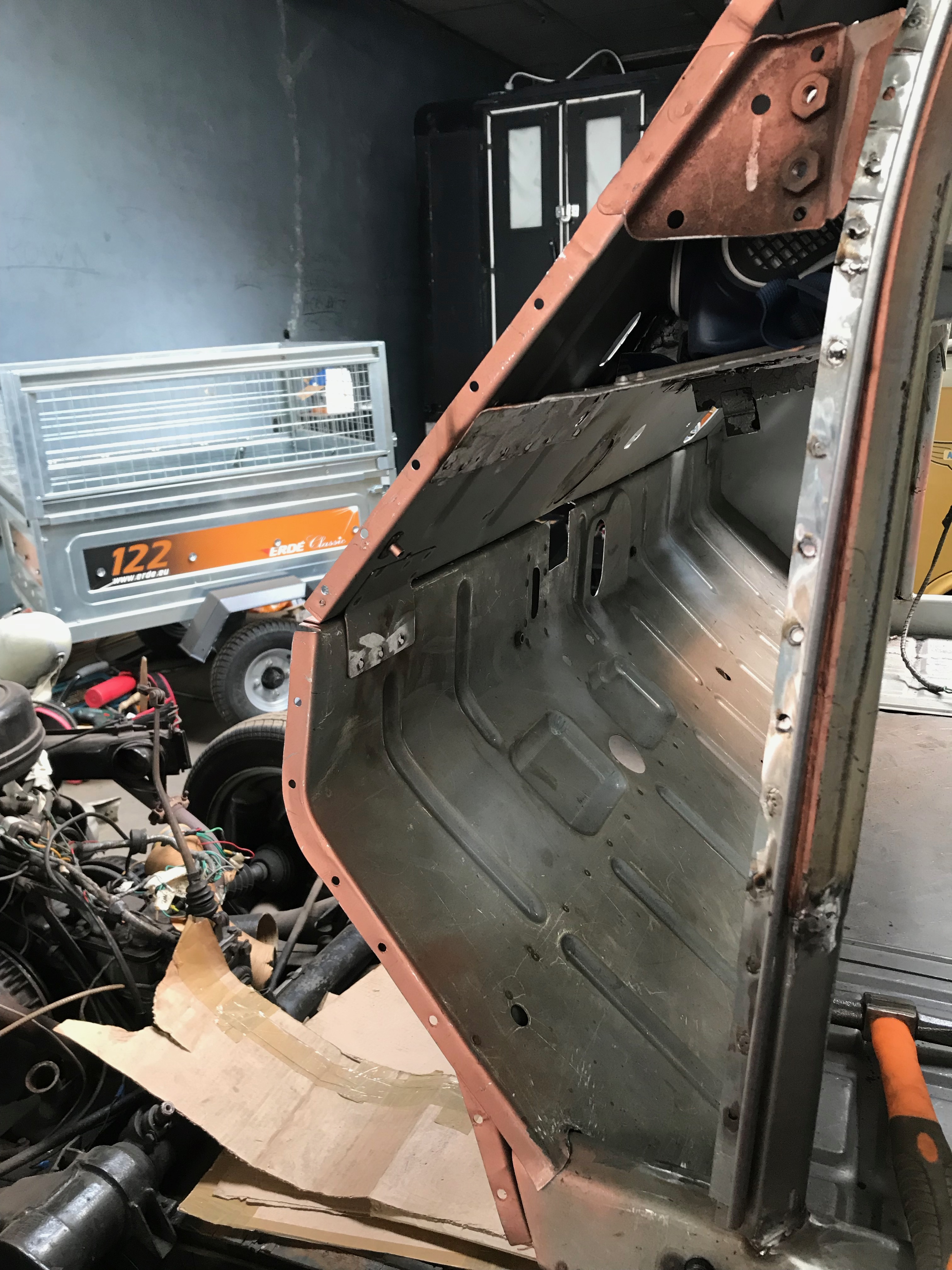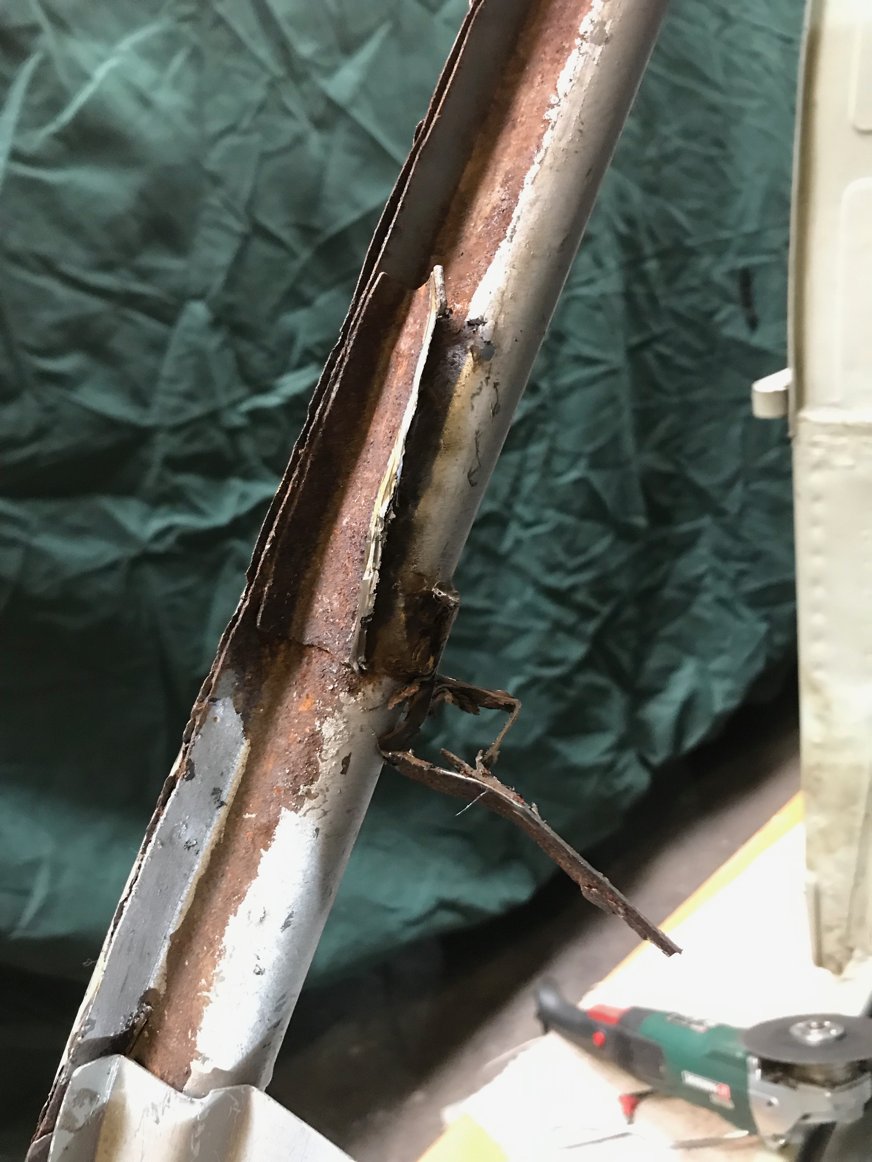 There’s no point in trying to salvage the bottom hinge brackets – the bits of steel which the hinges bolt to as they have been repaired once already and will become hoplessly out of shape if I try and cut them off and we reweld them. I have a pair of replacements ready…