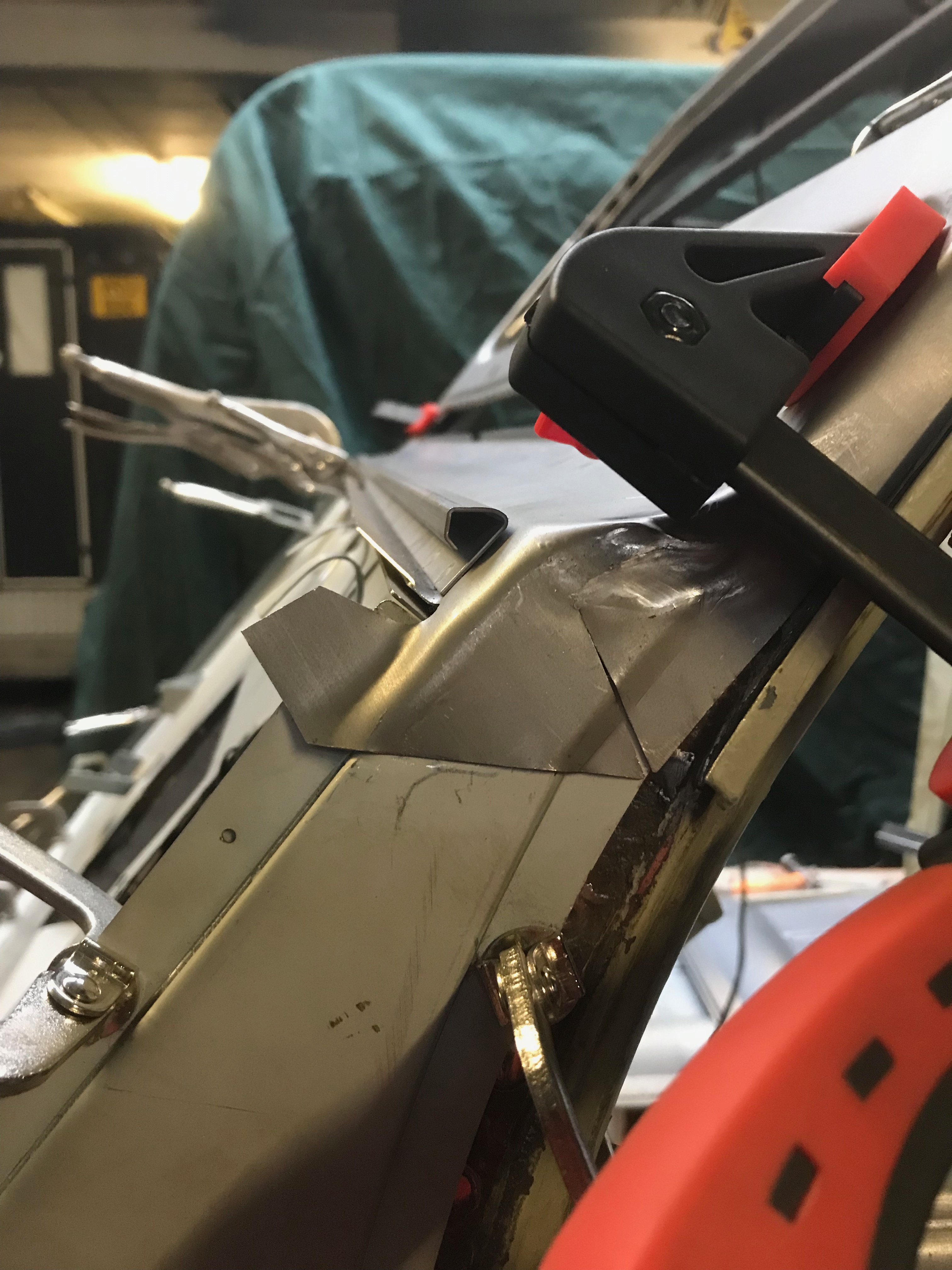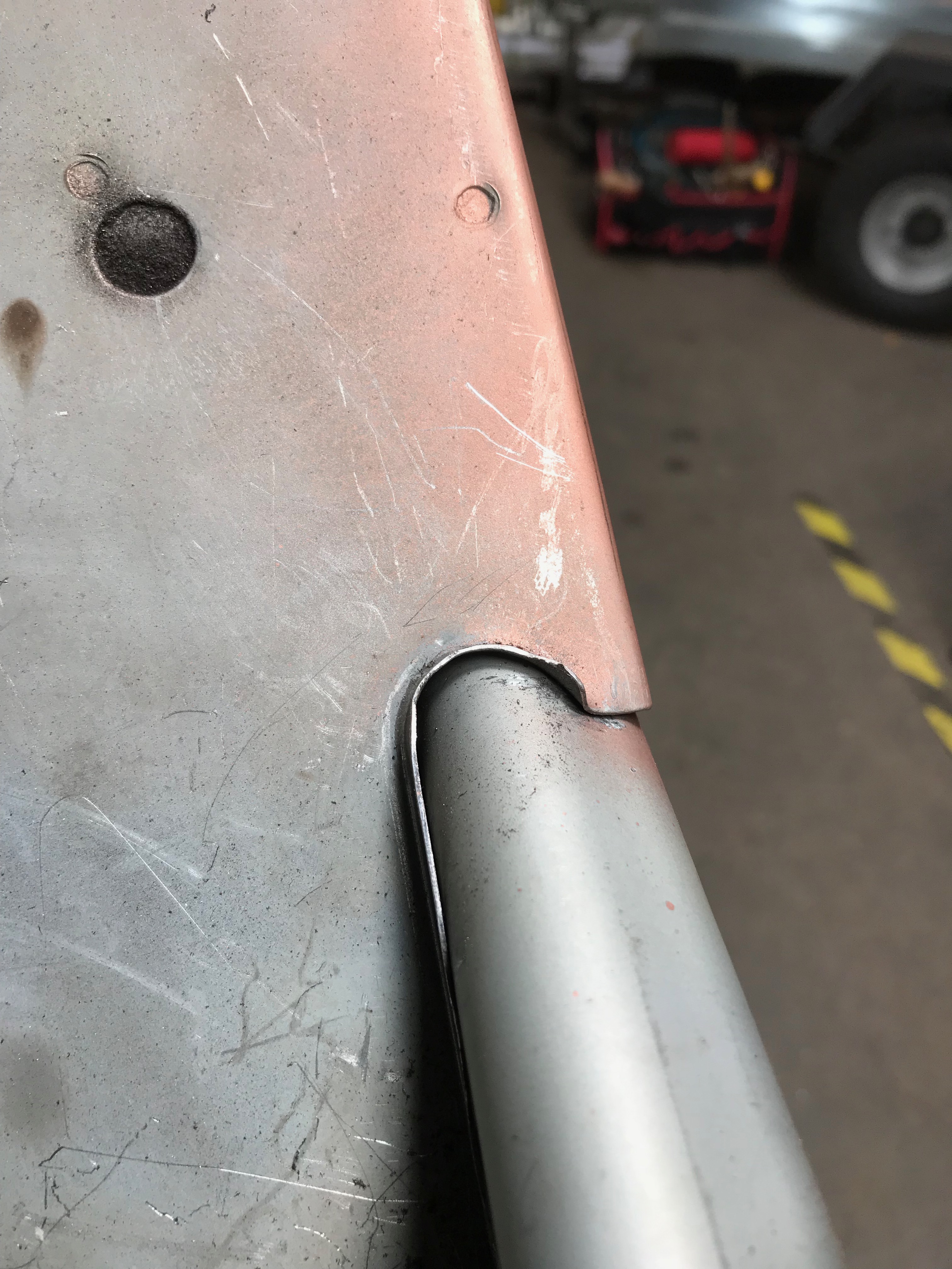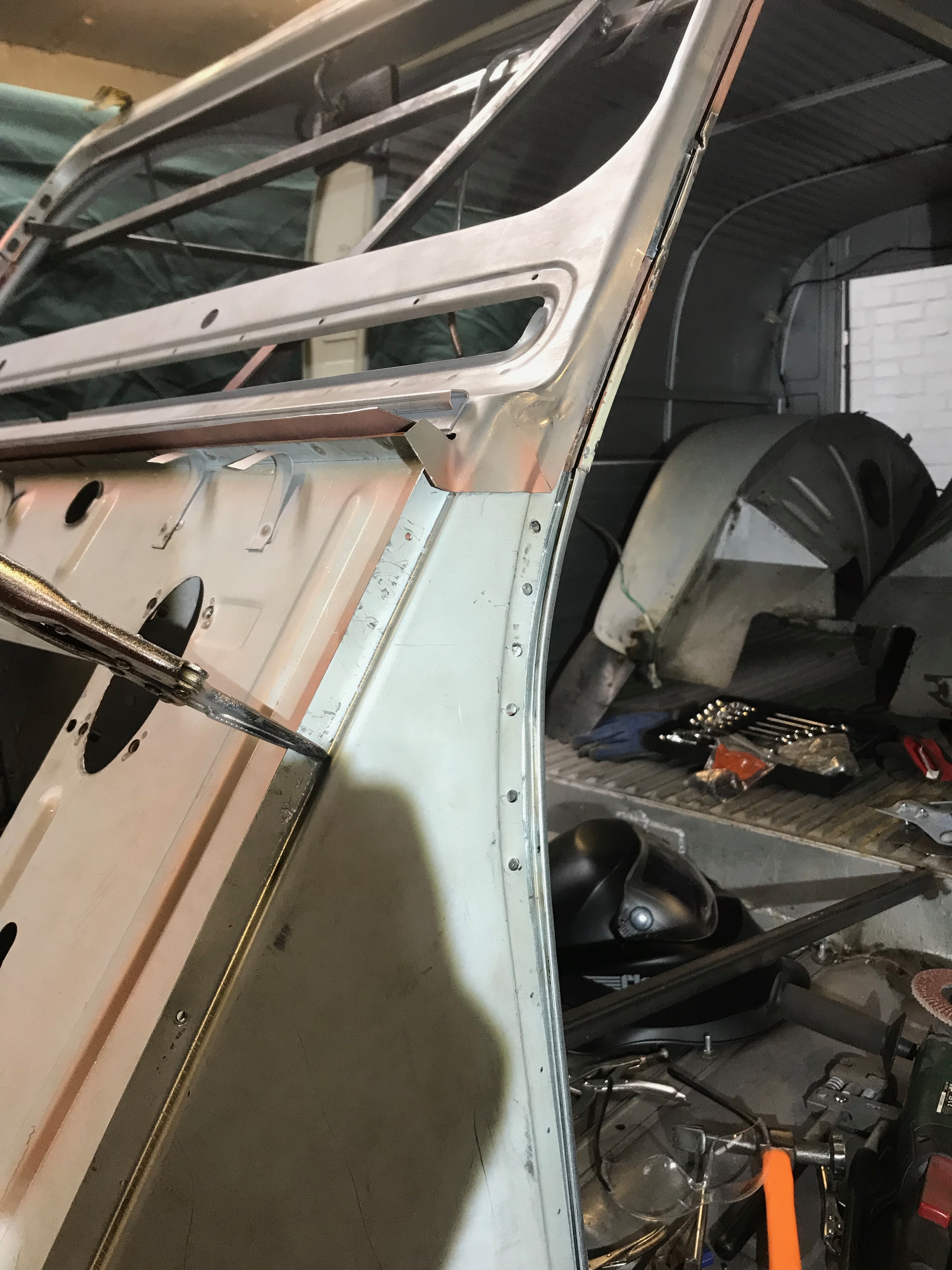 This is the inside edge of the A panel – once welded the flange will be folded over to close the join.