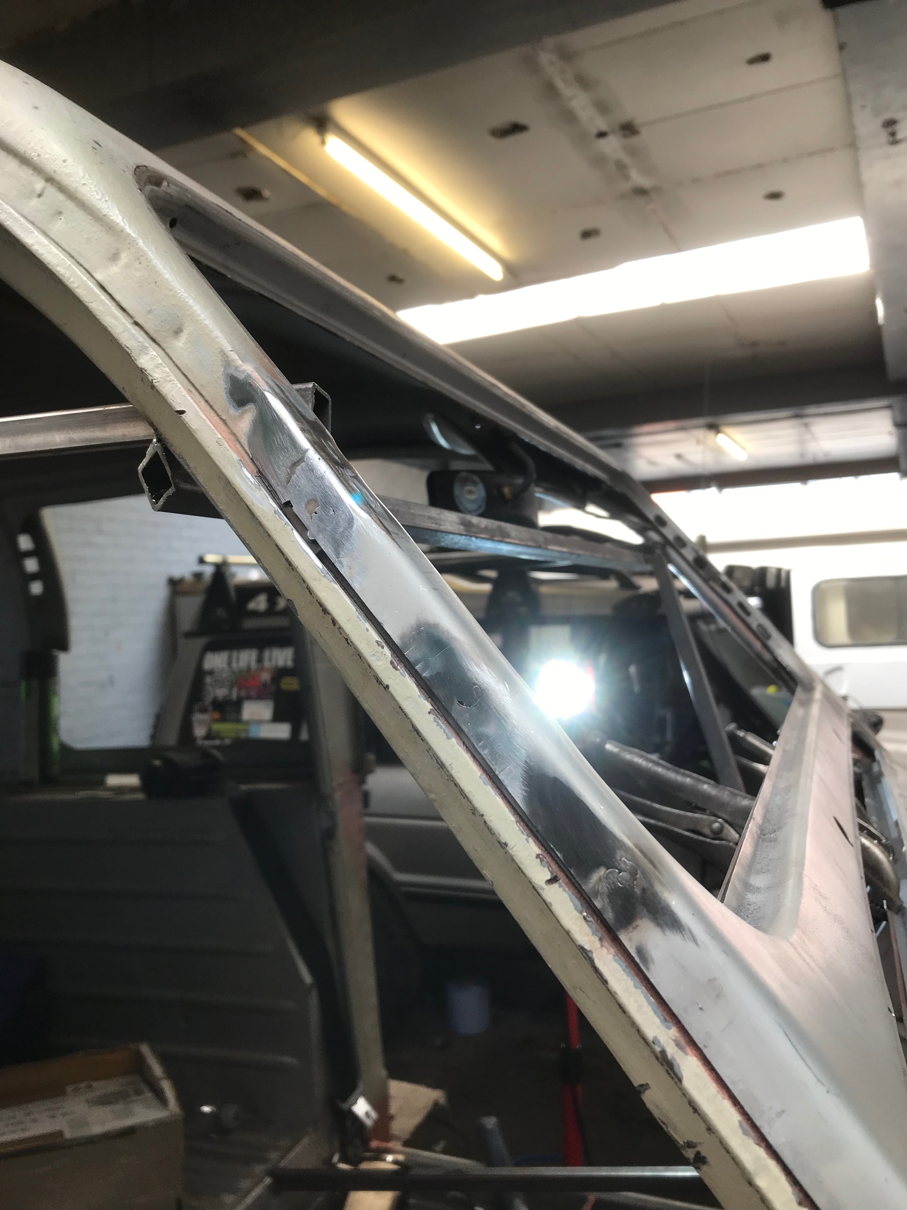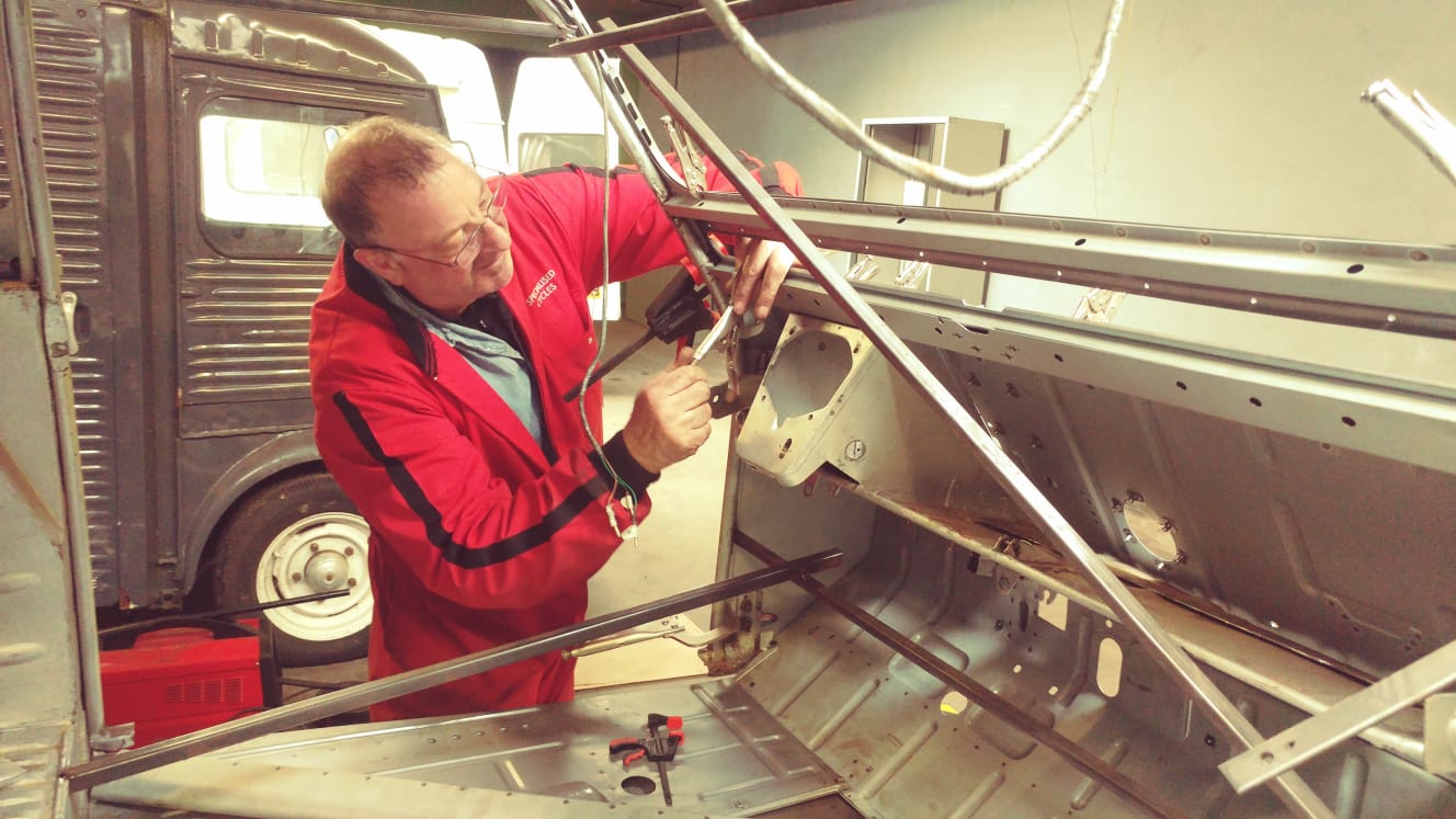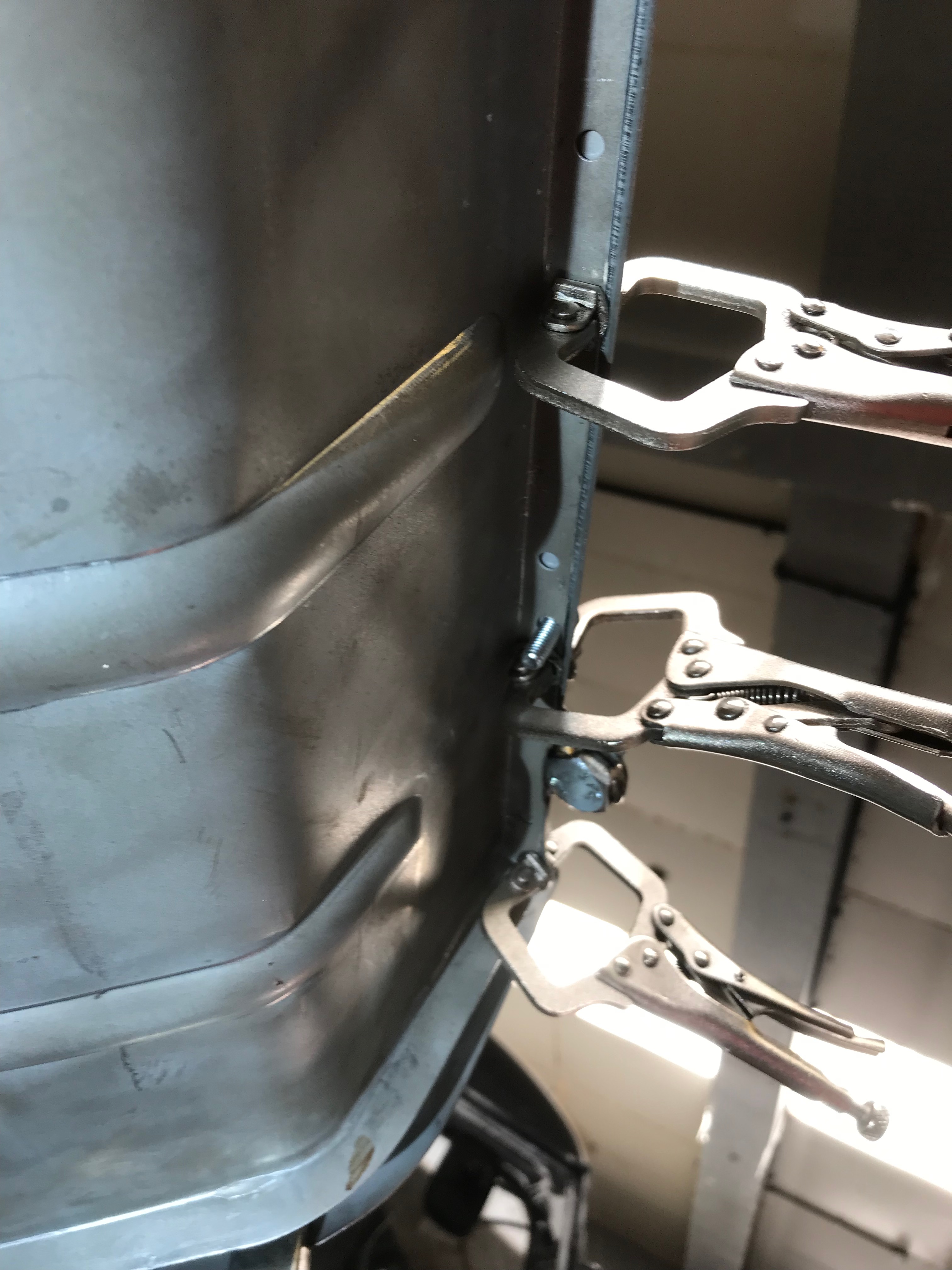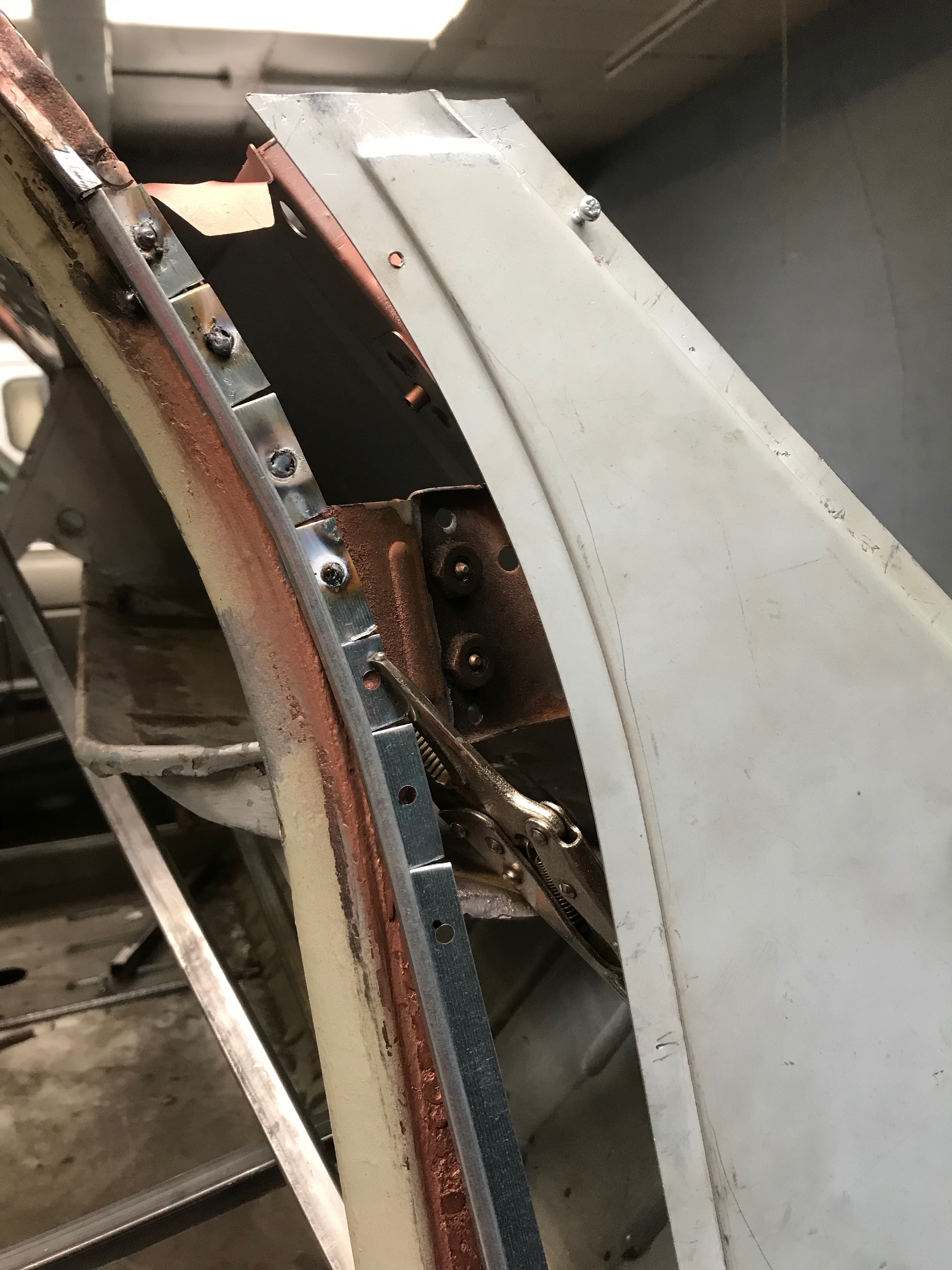 This is the inside edge of the A panel – once welded the flange will be folded over to close the join.