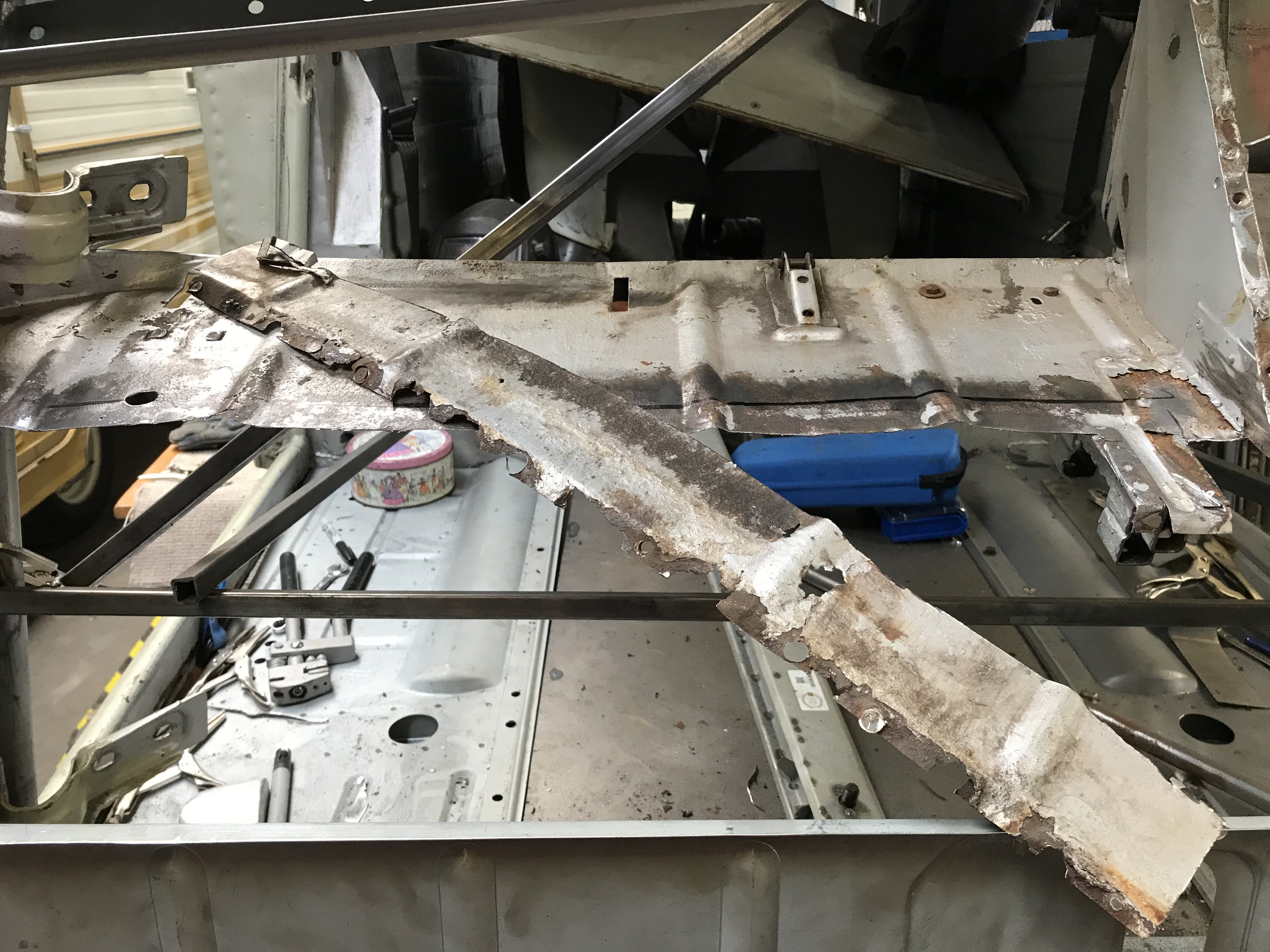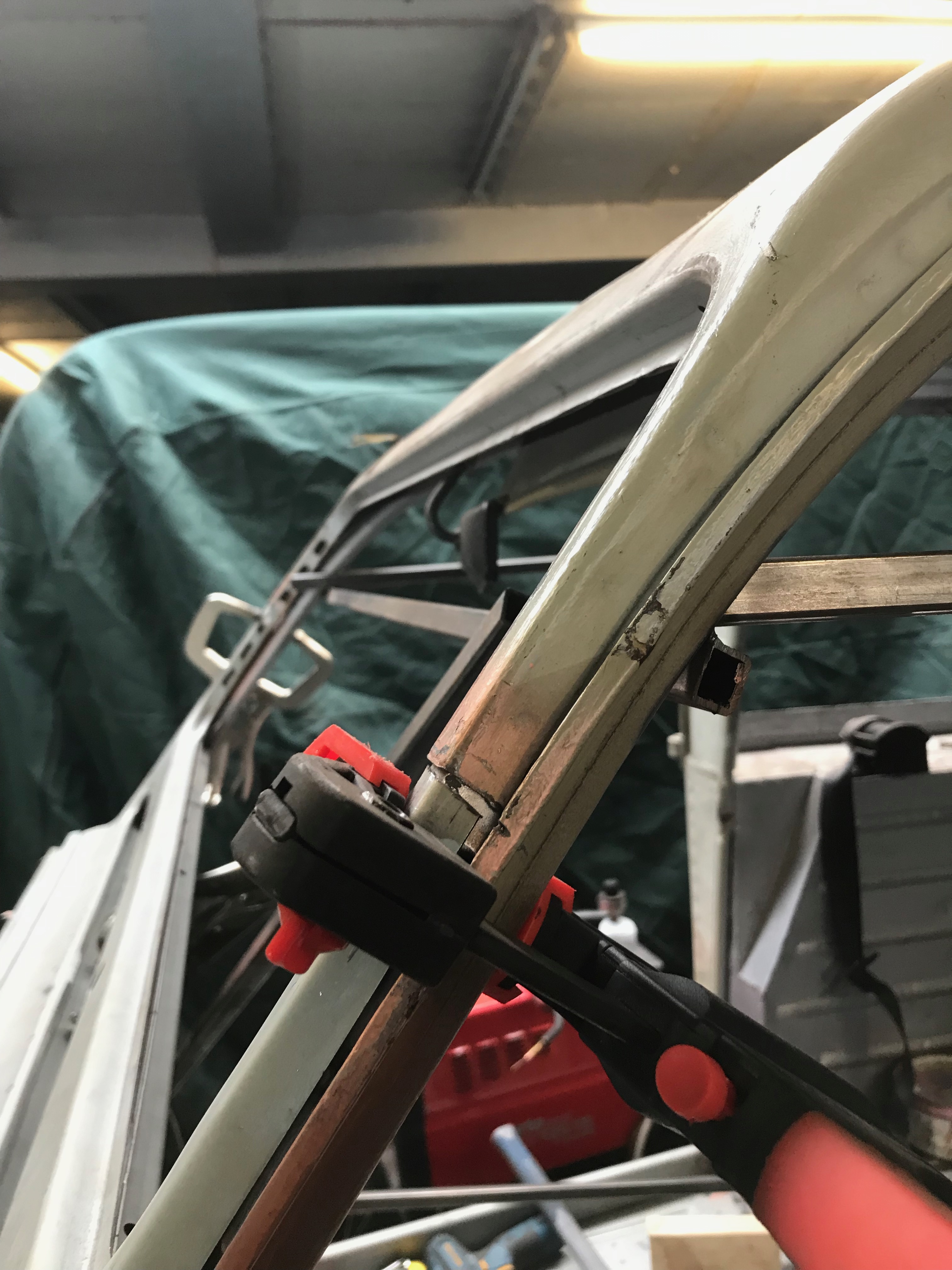 The A post repair section comes with a short lengh of tube, some rivnuts and a nut and bolt. The rivets and single nut bolt and 2 washers remain a total mystery to me – I’m sure they are included in the repair pack for some reason, but neither I, ECAS or the Dutch manufacturer of the parts were able to fathom out what that reason is, so I’ll just keep them in their little bag and then file them under B1N later. The tube is used to reinforce the join between the old and new A post sections, sliding neatly inside, it will give me something to weld to and minimise the risk of blowing a hole through where the join will be. I bought another metre of half inch tube (or ‘Toob’ as they say in Norfolk) as I’ll need a bit more than what was supplied with the repair section because I’ll be doing both sides.