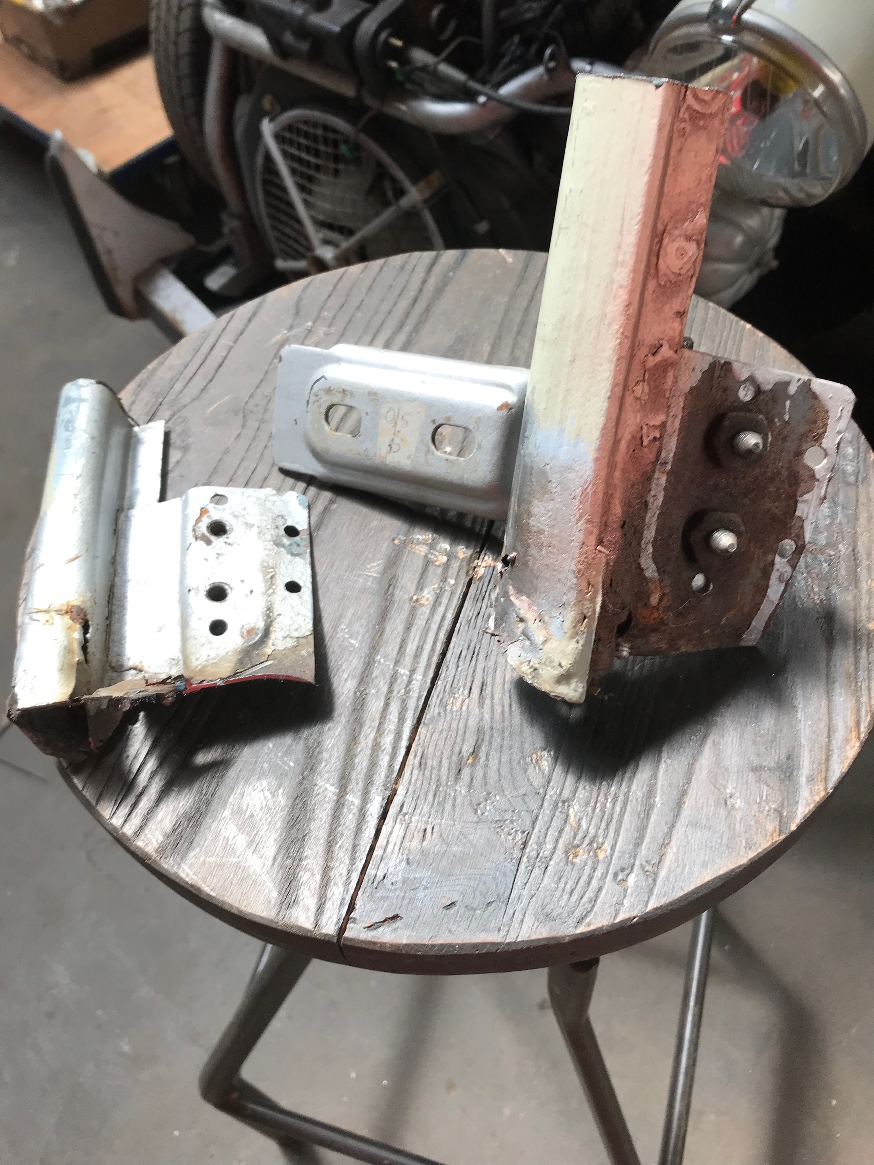 Here are the 2 old A post sections, complete with hinge mounts.
